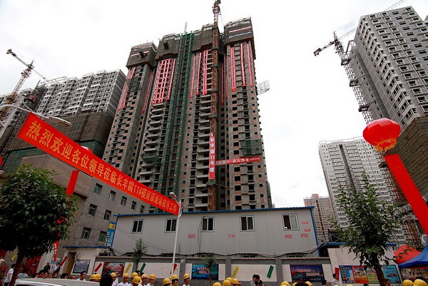 我公司承建的西安長(zhǎng)豐園小區(qū)11號(hào)樓主體工程舉行封頂儀式