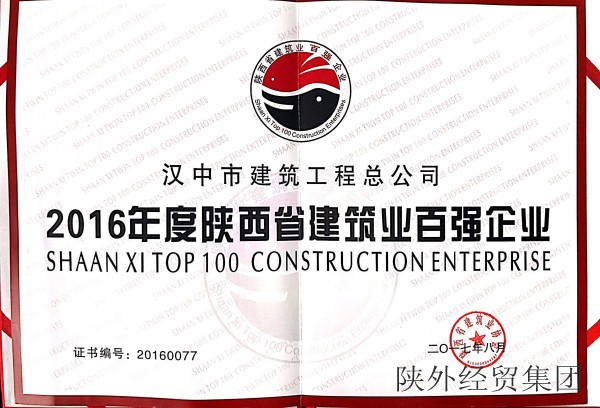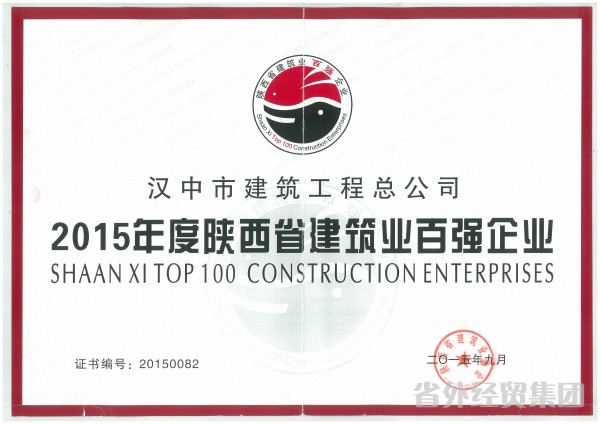 集團(tuán)所屬漢中市建筑工程總公司喜獲“2015年度陜西省建筑業(yè)百?gòu)?qiáng)企業(yè)”榮譽(yù)稱號(hào)
